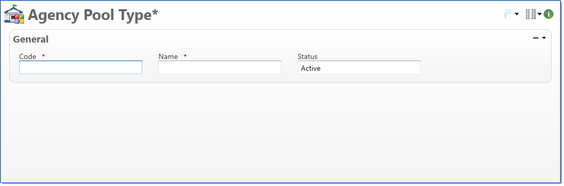 Code | Enter a unique code for the agency pool. Once a code has been entered and submitted, it cannot be changed. |