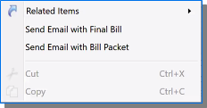 The Receivable Aging Inquiry also has a right click context menu that allows you to send the Final Bill or Bill Packet associated with the selected row.