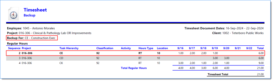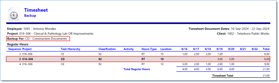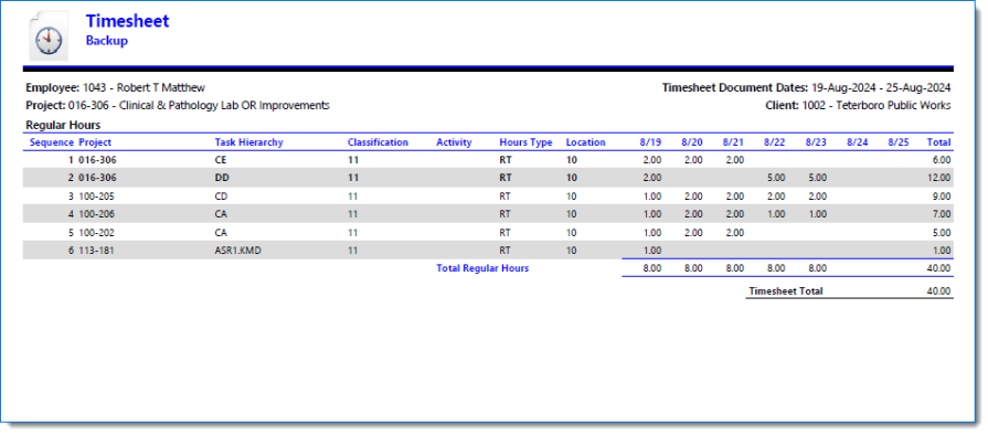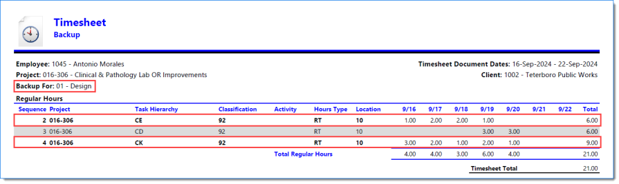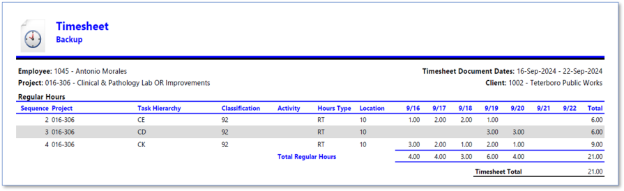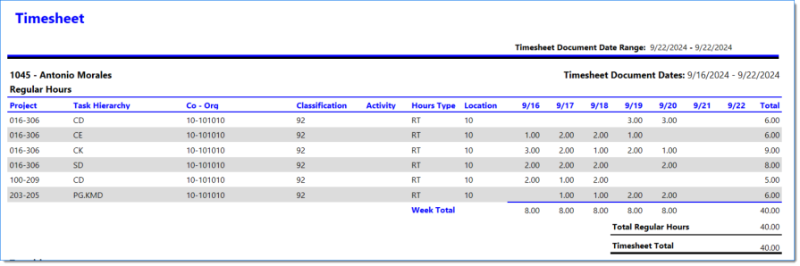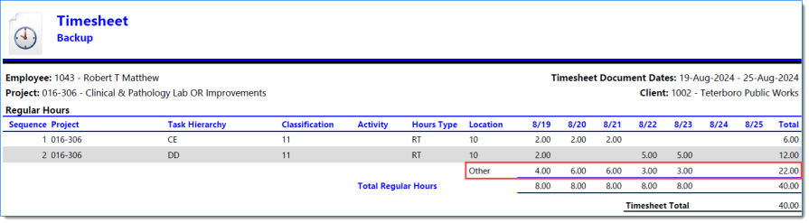 Example of Timesheet when Include Report is selected