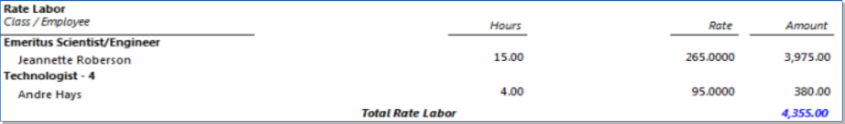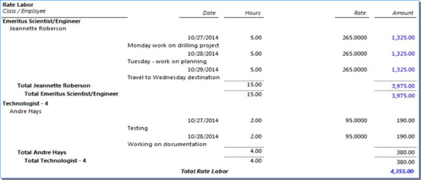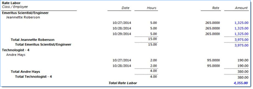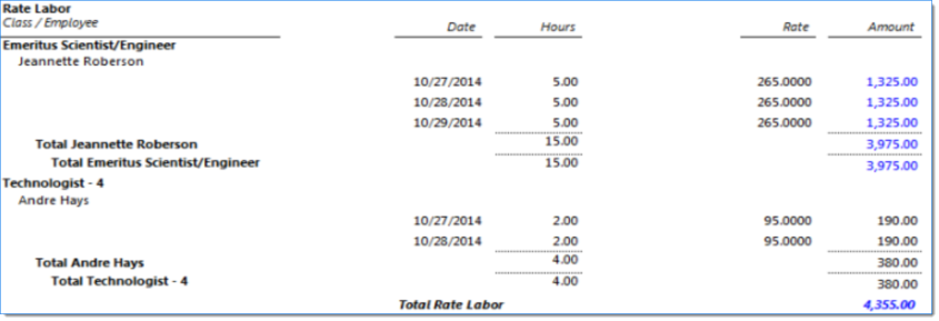 Includes detail after grouping by Class/Unit and Employee/Vendor/Client