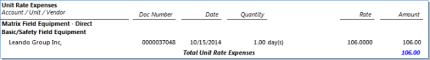 Shows Unit Expense Cost Rates and Multipliers on the Prebill only